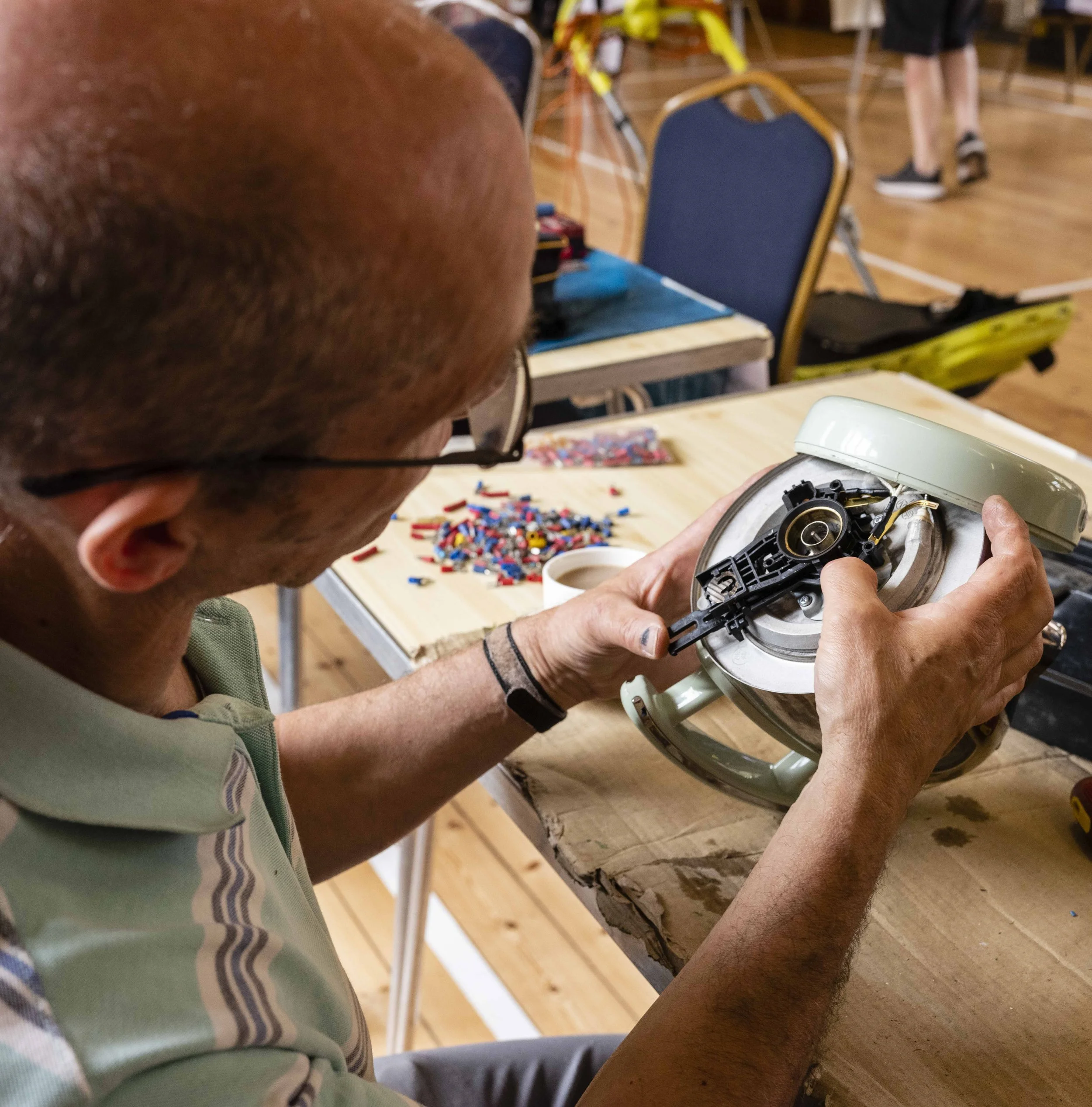 A community coordinator was then appointed. Initially the coordinator’s role focussed on planning attendance at events, speaking to potential volunteers and repair café organisers, and training as a PAT tester. Following this, the coordinator also began liaising with businesses and schools to get the message out more widely, along with collecting donated smart tech for repair and refurbishment through tech amnesties